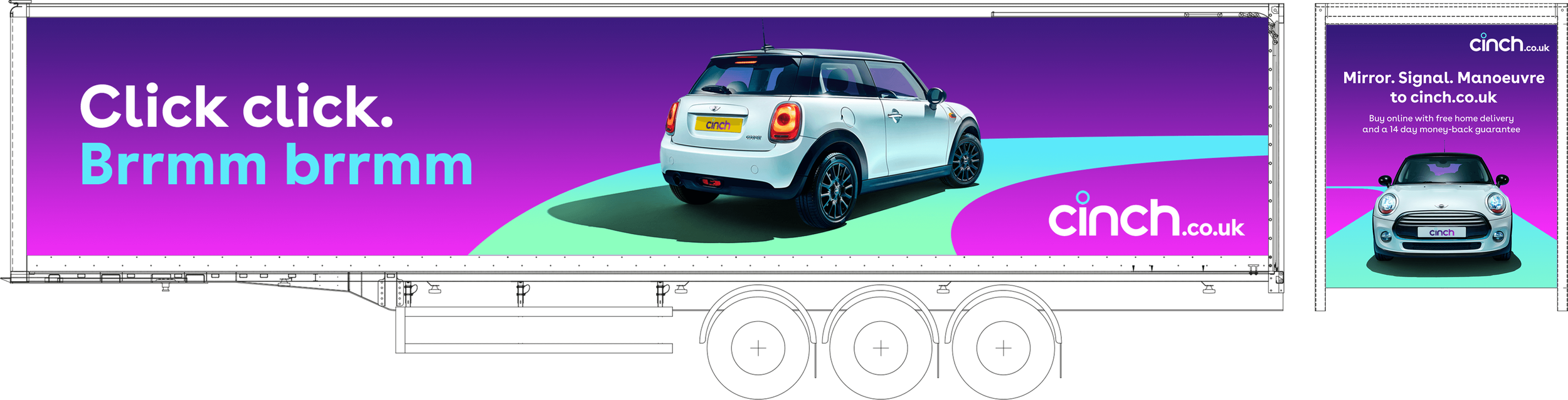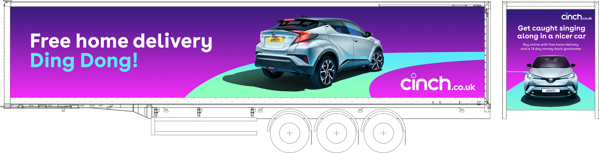 Cinch purchased ad space on the famous Eddie Stobart trucks. These trucks are famous for the names that are printed on them and a perfect space to catch peoples attention. Cinch recently rebranded and wanted to use this as an opportunity to push it’s new look and feel across the country. I worked closely with retouch & a copywriter to create a series of 3 designs to wrap the fleet which then toured the country.